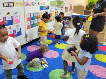 The music area allows the children to express themselves through music. Children are abler to be physically active and help gain control of their bodies. By experimenting with different sounds and beats the children are able to enhance memory skills, language development, self-expression, coordination, and creativity.