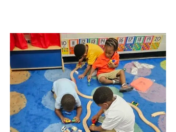 The block area aids in gaining knowledge of math concepts by working with blocks of different sizes and shapes. The children are given the opportunity to build structures and take on roles of people and community helpers. This encourages role playing, gaining knowledge of the world, self-expression, problem solving and creativity.